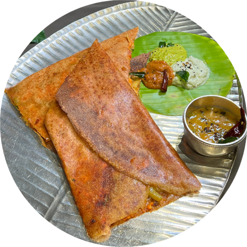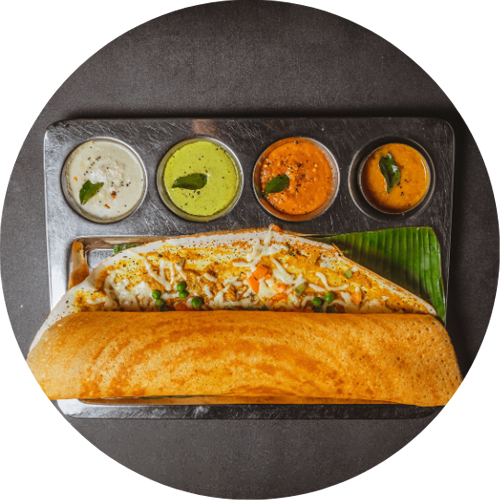 Traditional stuffed dosa with rich Chettinad flavors.