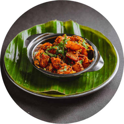 Golden fried potatoes with tangy masala.