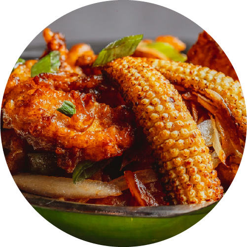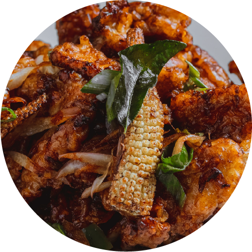 Crunchy baby corn coated with spices.