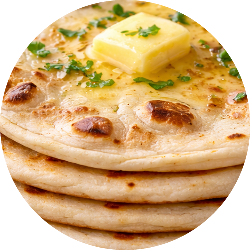 Whole wheat paratha stuffed with spiced potatoes.