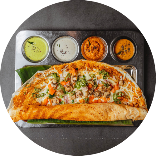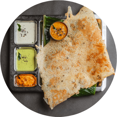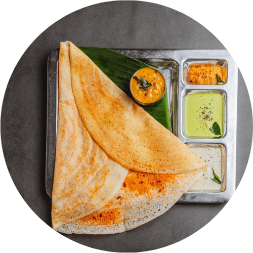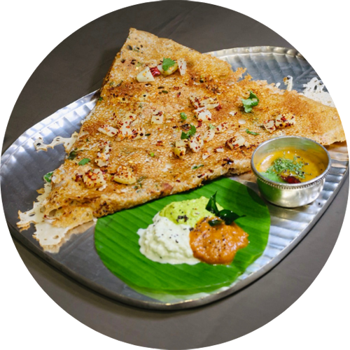 Crispy and thick pancake style dosa.