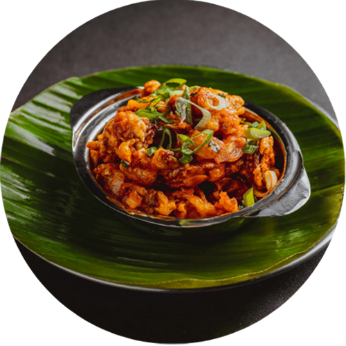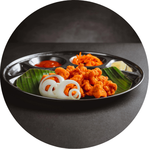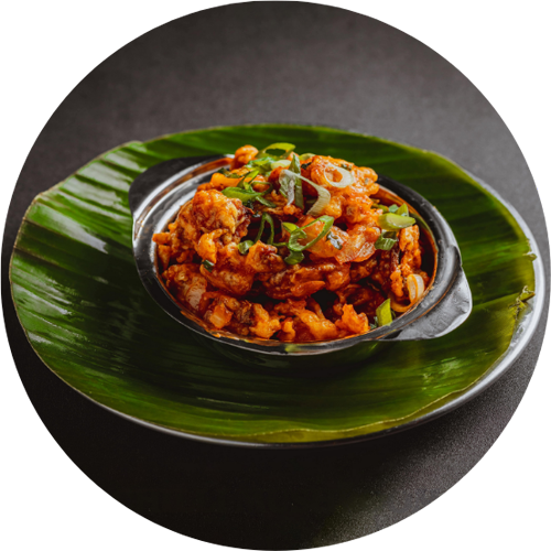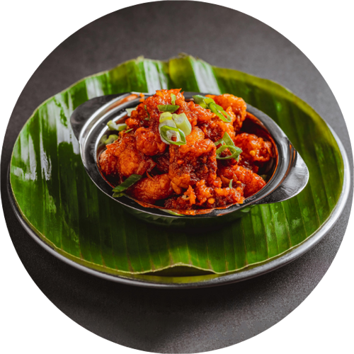 Crispy cauliflower in Indo-Chinese gravy.