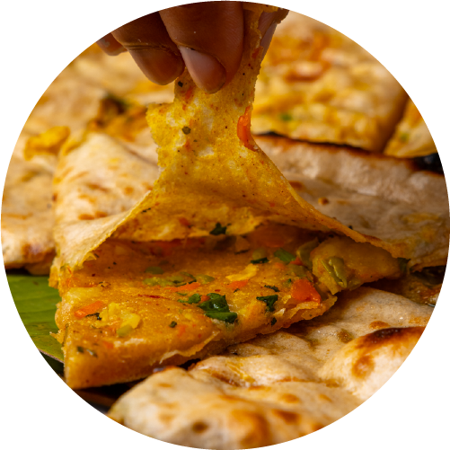 Cheese dosa with bold Schezwan spice flavor.