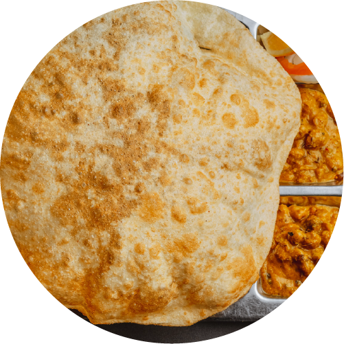 Large fluffy bhatura served with spicy chickpea curry.
