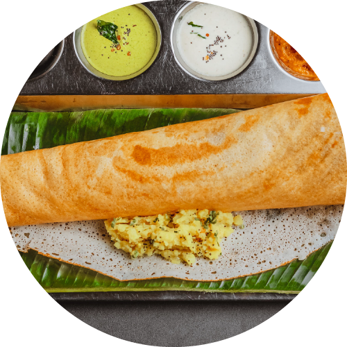 Large crispy dosa with potato stuffing.