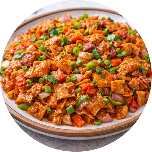 Parotta stir-fried with onions, peppers and chilli sauce.
