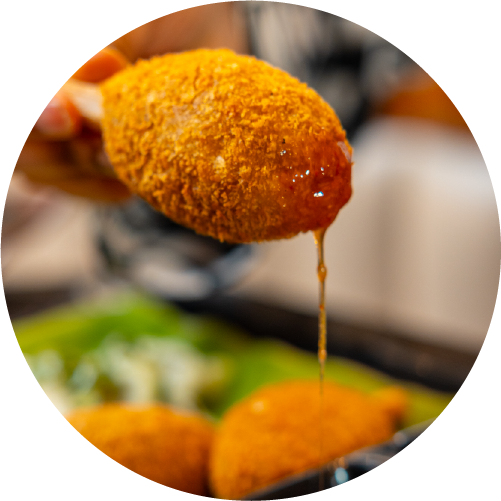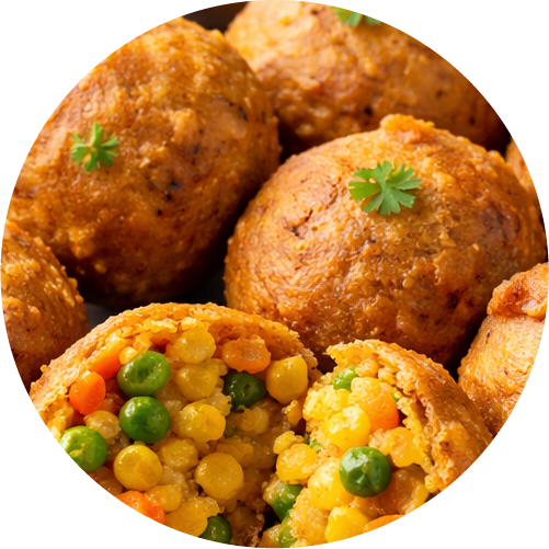 Crispy fried potato stuffed fritters.