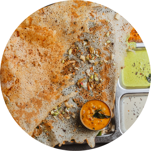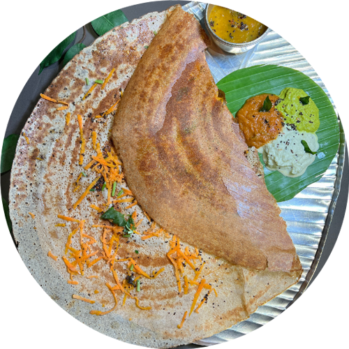 Dosa roasted with clarified butter for rich flavor.