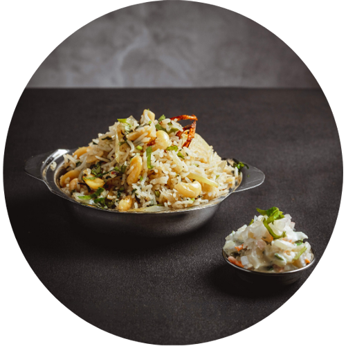 Jeera flavored rice tossed with roasted cashews and spices.