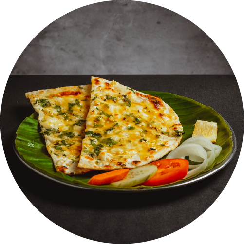 Cheesy naan with garlic and chilli.