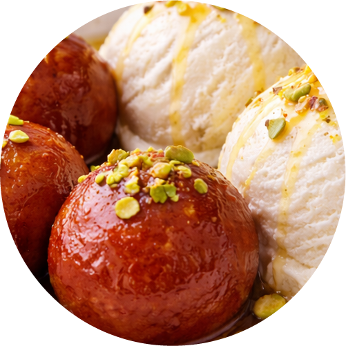 Warm jamun served with cold ice cream.