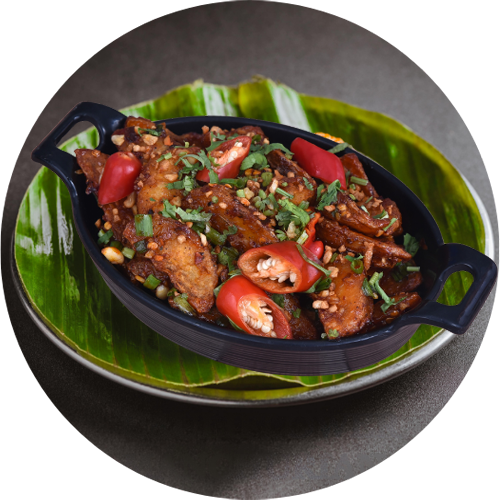 Crispy pineapple tossed in honey chilli sauce.