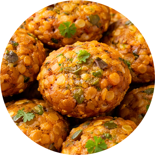 Golden fried vegetable patties seasoned with Indian spices.