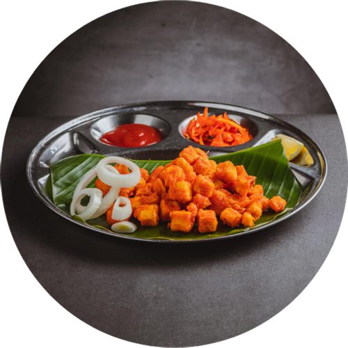 Crispy paneer cubes in special 65 sauce.