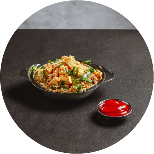 Aromatic biryani with soft paneer and masala.