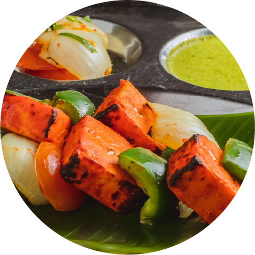 Grilled spicy Indian cottage cheese marinated with masala.