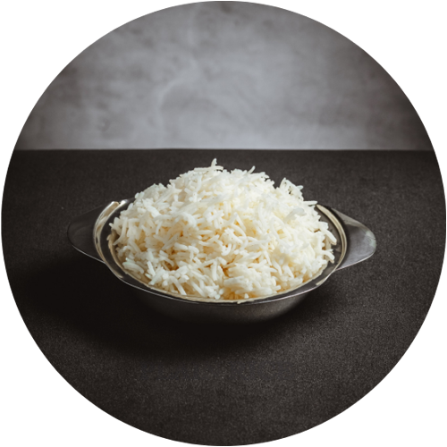 Plain steamed basmati rice.