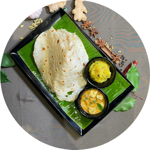 Soft whole wheat flatbreads served with two different kormas.