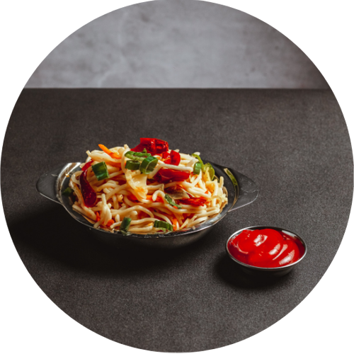 Spicy Schezwan flavored noodles.