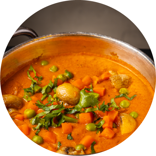 Vegetables cooked in buttery tomato gravy.